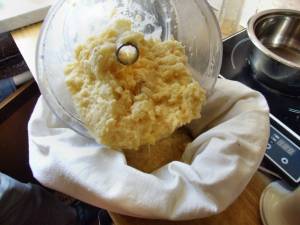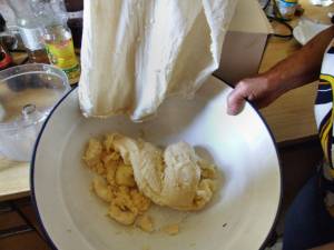Necháme vokapat přes cedítko (nebo se to může vymačkat přes plátěnej pytlík nebo jenom do hadru).