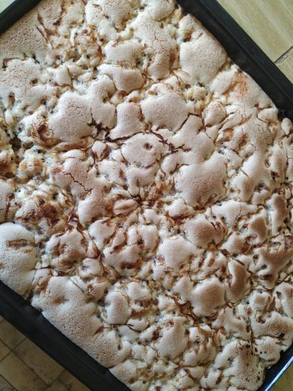 Může se to nechat jako samotnej piškot, nebo se do toho nasype nějaký ovoce a nechá se to zapéct.