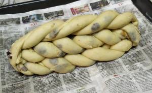 Někdo jednotlivé prameny připraví tak, že těsto nejprve rozválí na placku, kterou pak sroluje a má jeden pravidelný pramen, že kterého navíc tolik nečouhají rozinky.
