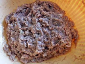 Přípravime masovou směs: mleté maso, vajíčko, zaprášíme hrubou moukou nebo strouhankou. Na dochucení máme volné pole působnosti - nakrájenou cibuli, česnek, majoránku, oregano, sůl, podravku…