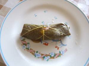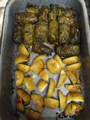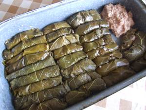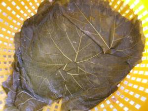 Nastříháme vinné listy (mladší jsou lepší, ale lze použít i starší), vystřihneme řapík s žilnatinou a dáme vařit do osolené vody s octem (nálev může být i kyselejší). Vaříme asi 10 min. do mírného zhnědnutí.